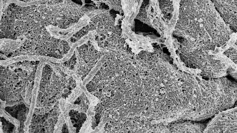 In animal cells, cell shape changes are largely driven by the actomyosin cortex, a thin cytoskeletal network (~ 150 nm thick) that lies directly beneath the plasma membrane. The nanoscale architecture of the cortex and its role in driving cell shape changes remains poorly understood. This project investigated how changes in cortex architecture correlate with changes in cortical tension upon cell cycle progression. In HeLa cells, cortical tension increases over threefold between mitotic cells and rounded interphase cells. In both phases, the cells adopt a rounded morphology and SEM imaging alone cannot distinguish between them. In a CLEM approach, cellular DNA was imaged by fluorescence microscopy to establish cell cycle phase prior to imaging the actomyosin cortex of the same cells by SEM.