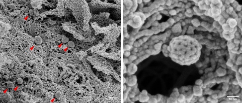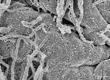 In SE/SEM-CLEM (correlative light-electron microscopy), cells imaged first by light or fluorescence microscopy are subsequently processed for SE-imaging in the SEM to reveal aspects on the surface of the same cells. Light/fluorescent images can then be overlaid with the corresponding SEM images.